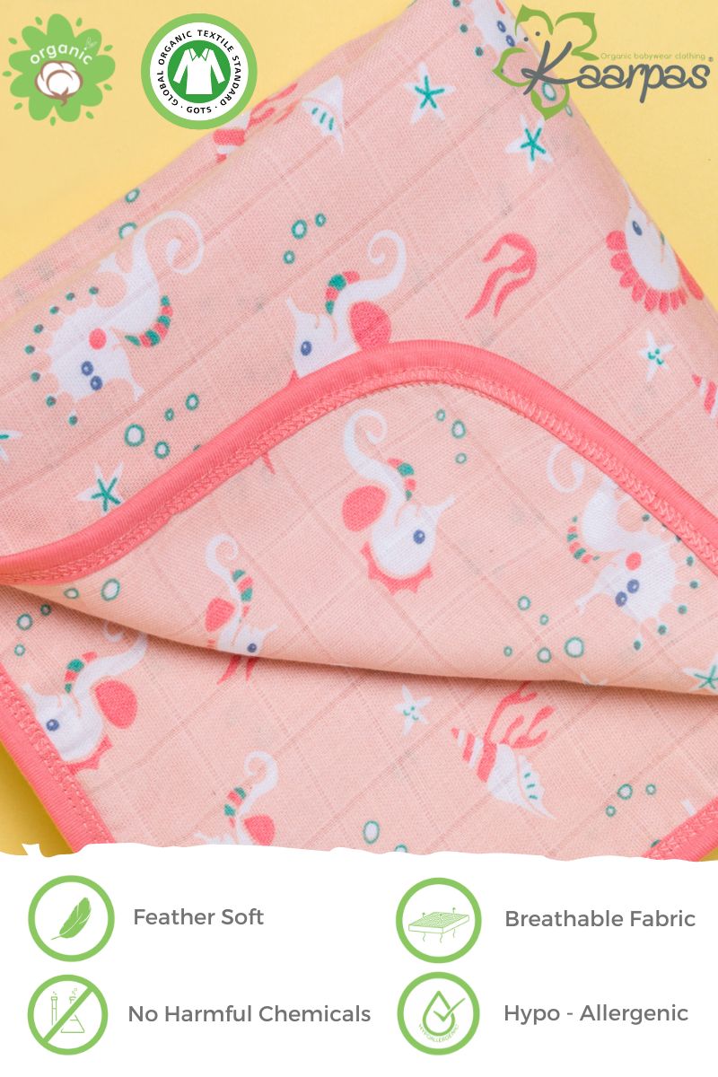 ✔SOFTEST BREATHABLE FABRIC: 2-layered breathable muslin maintains the required natural warmth for your baby. 100% Organic Cotton (GOTS Certified) with no harmful chemical color, or dyes - it is most suitable for your baby's delicate and sensitive skin. Both sides printed blankets. The premium pre-washed blanket gets softer with every wash. Rounded edges prevent poking. Fade-resistant and quick-drying.