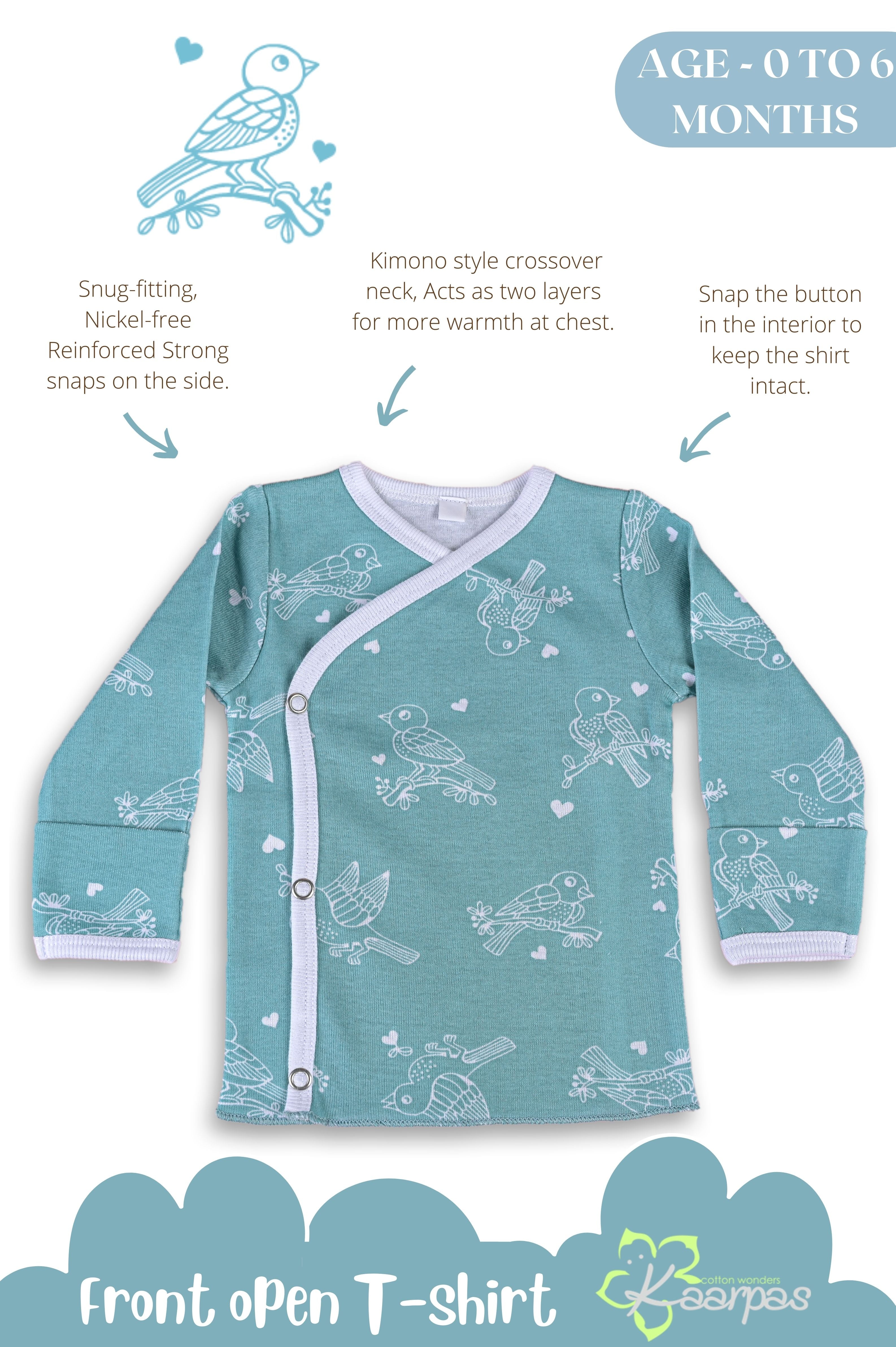 ✔FRONT OPEN TEE & JHABLA PACK 1: Sparrow Teal for 0 to 3M Snug fitting yet stretchable Front open tee & Jhablas are Feather soft, breathable, lightweight & GOTS Certified. Made of 100% Organic Cotton Fabric Making It Soft & Gentle for your Baby’s Skin. Designed with Removable Labels which you can easily pull off so it doesn’t irritate your Baby's Skin. Our Quality Stitching Make It Durable and Long Lasting. The actual product may differ slightly in color from the one illustrated in the images.