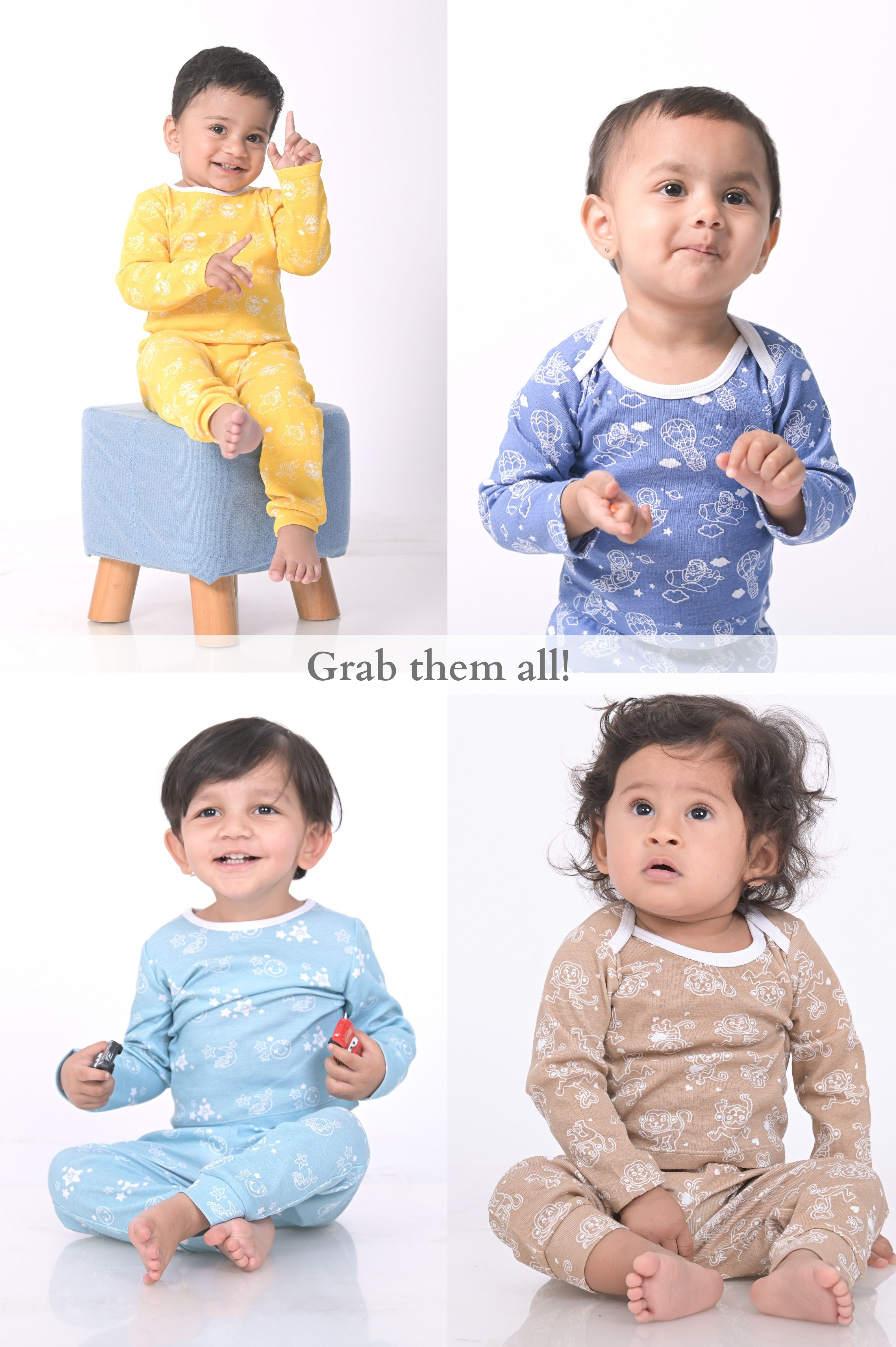✔NIGHTWEAR PYAJAM SET: The super delicate skin of your baby always seeks the most gentle and softest care. The new Pyjama sets of Kaarpas with 100% Organic cotton and skin-friendly dyes on the ribbed fabric are the best for your baby. Expandable shoulders make dressing quick, easy and convenient for changing. The pant comes with a gentle elastic waistband - ideal for comfort along with the banded ankles making sure it won't ride up. Your baby would also enjoy the trendy designs with cute characters in different shades of pastels.