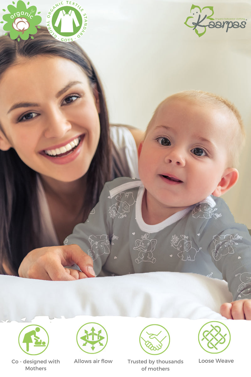 ✔WHY ARE KAARPAS’S ORGANIC PYJAMAS THE BEST? This organic cotton front open Pyjama Set has cute prints that contain no harsh chemicals or dyes. This fabric is feather-soft, breathable & naturally Hypoallergenic. All the prints have AZO-free dyes that don’t harm your baby in any way. The dyes are baby-skin friendly. This PJ set is GOTS (Global Organic Textile Standard) certified and is tested by expert moms to be very gentle on the baby’s skin.
