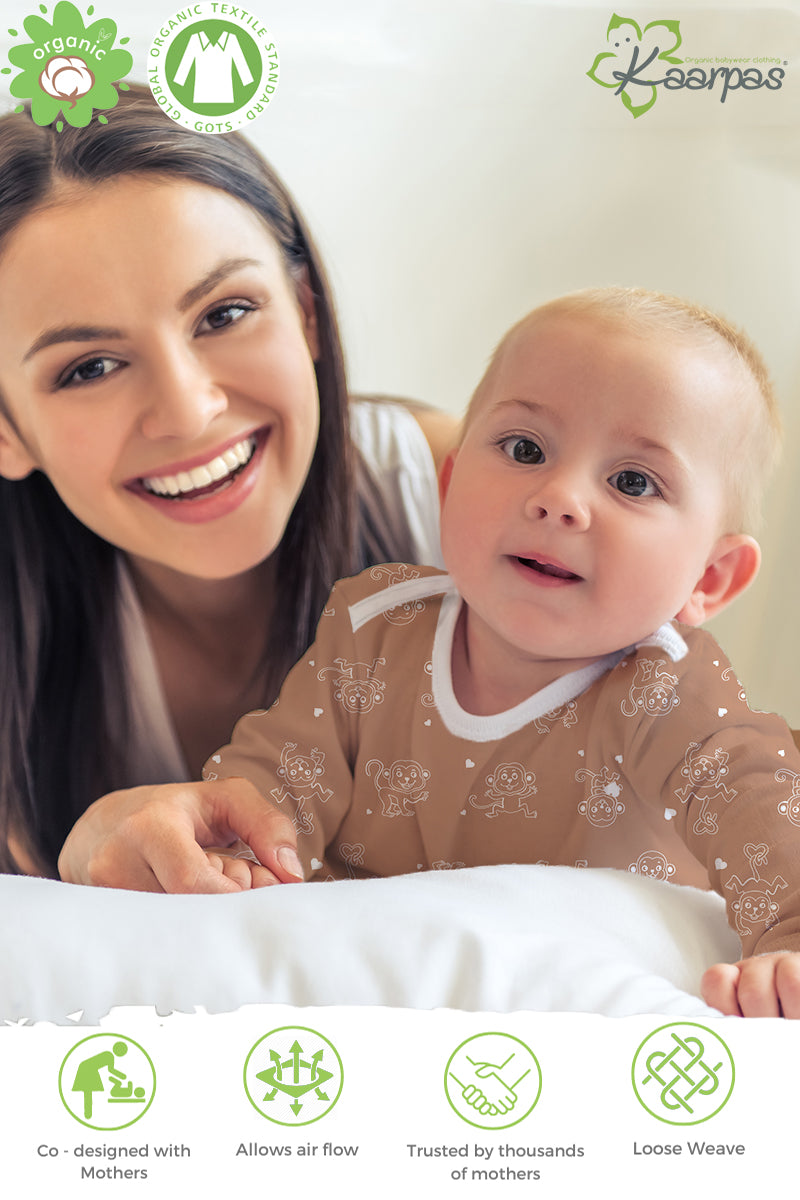 ✔WHY ARE KAARPAS’S ORGANIC PYJAMAS THE BEST? This organic cotton front open Pyjama Set has cute prints that contain no harsh chemicals or dyes. This fabric is feather-soft, breathable & naturally Hypoallergenic. All the prints have AZO-free dyes that don’t harm your baby in any way. The dyes are baby-skin friendly. This PJ set is GOTS (Global Organic Textile Standard) certified and is tested by expert moms to be very gentle on the baby’s skin.