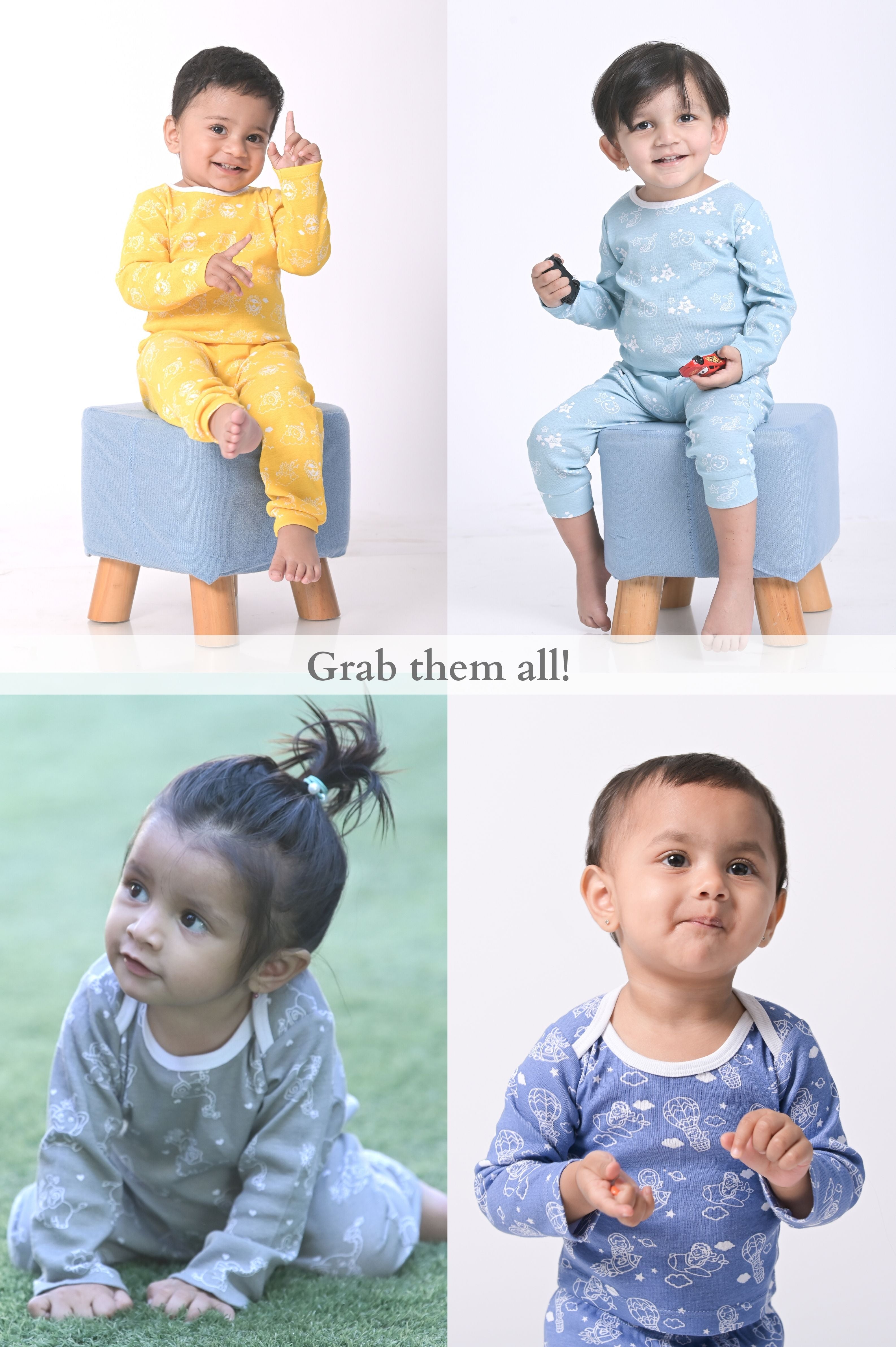 ✔NIGHTWEAR PYAJAM SET: The super delicate skin of your baby always seeks the most gentle and softest care. The new Pyjama sets of Kaarpas with 100% Organic cotton and skin-friendly dyes on the ribbed fabric are the best for your baby. Expandable shoulders make dressing quick, easy and convenient for changing. The pant comes with a gentle elastic waistband - ideal for comfort along with the banded ankles making sure it won't ride up. Your baby would also enjoy the trendy designs with cute characters in different shades of pastels.