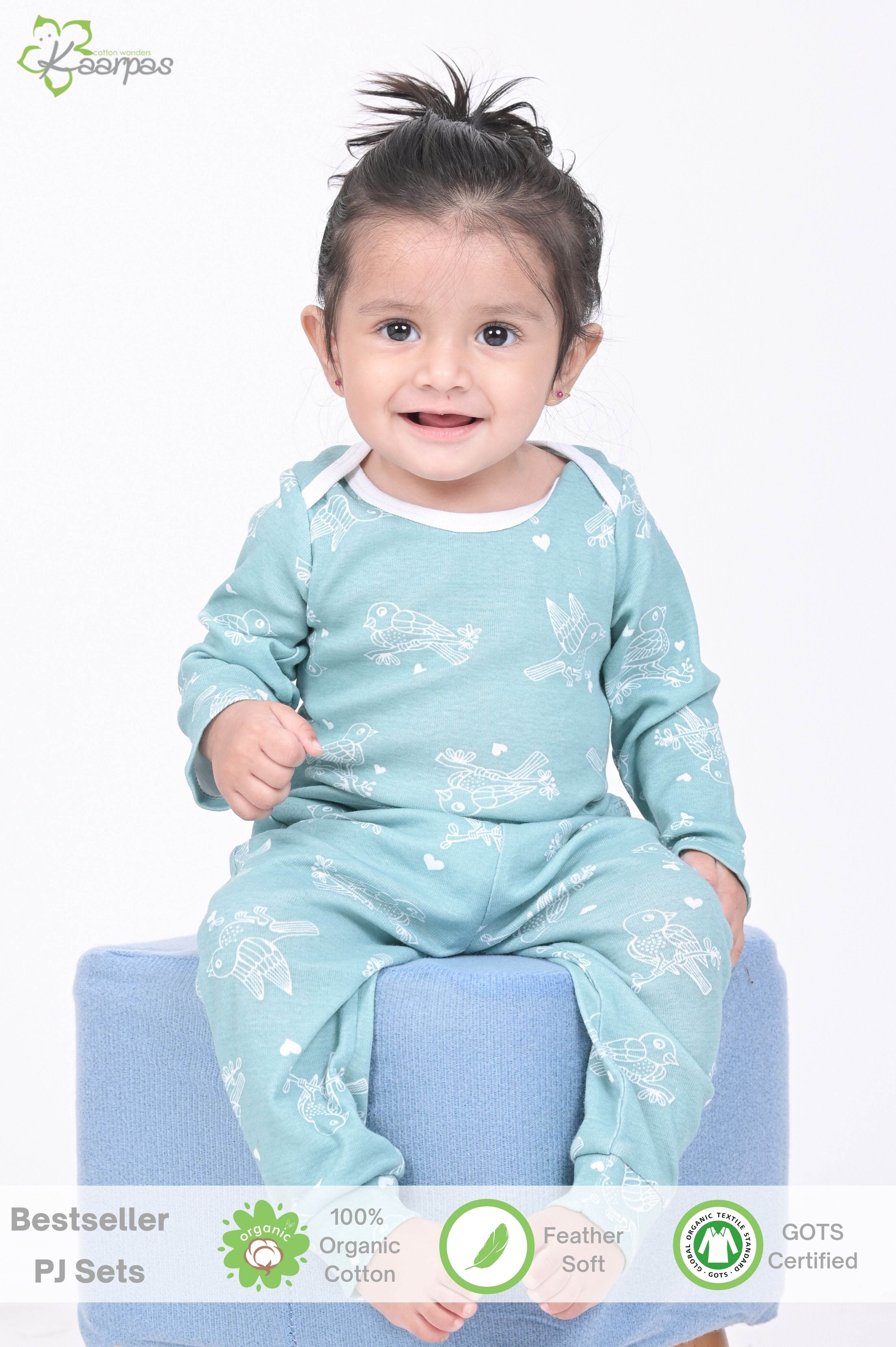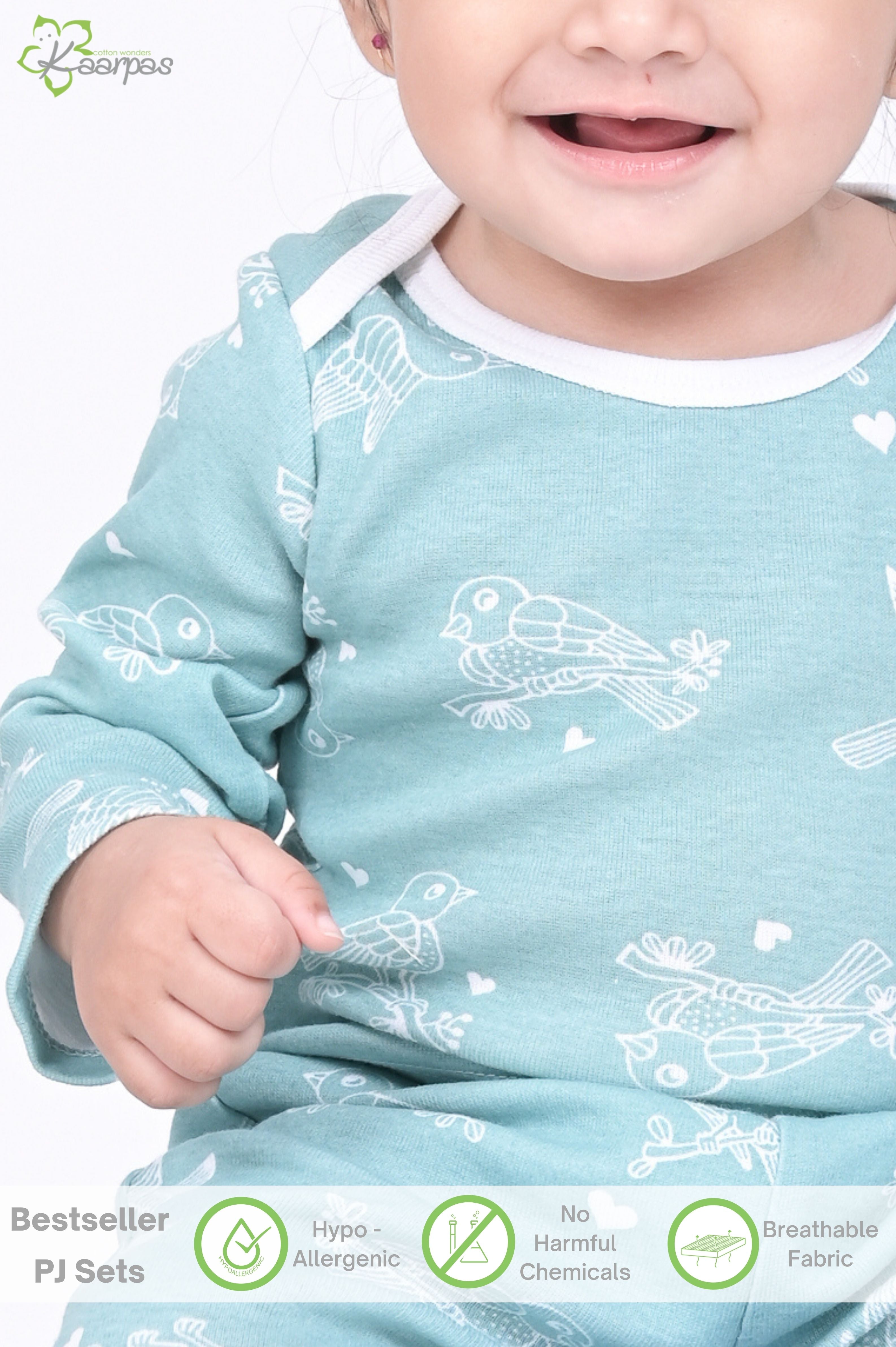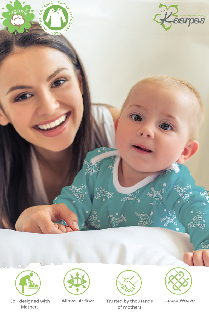 ✔WHY ARE KAARPAS’S ORGANIC PYJAMAS THE BEST? This organic cotton front open Pyjama Set has cute prints that contain no harsh chemicals or dyes. This fabric is feather-soft, breathable & naturally Hypoallergenic. All the prints have AZO-free dyes that don’t harm your baby in any way. The dyes are baby-skin friendly. This PJ set is GOTS (Global Organic Textile Standard) certified and is tested by expert moms to be very gentle on the baby’s skin.